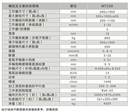 1、本機(jī)床屬于重切削磨床,適用于機(jī)械制造、模具等行業(yè)的平面磨削??赡ハ麂摷?、鑄件及有色金屬等材料。工件可直接固定在工作臺面上或放在電磁吸盤上磨削。